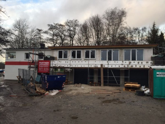 Mit großen Schritten nähern wir uns dem Richtfest. Die Zimmerleute haben mit der Erstellung des Dachstuhls begonnen, die Fassade des Altbaus wird neu gedämmt. Aber auch im Inneren unseres neuen Anbaus wird fleißig gearbeitet. Die Aufteilungen für die neuen Sanitärbereiche sind bereits fertig, die Durchbrüche zum Altbau sind größtenteils erstellt und die Decke der neuen Bootshalle wird schon gedämmt. ... Mehr erfahren