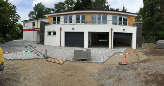 Kurz vor der offiziellen Einweihung unseres erweiterten Heims am Baldeneysee werden noch die letzten Arbeiten am und um das Haus erledigt. Als letztes werden die Garten- und Landschaftsbauer die Baustelle verlassen. Sie haben in den letzten Wochen ganze Arbeit geleistet. Auf der zum See zugewandten Seite wurde eine komplett neue Zufahrt von der neuen Bootshalle aus zum See geschaffen. Zusätzlich gibt es dort nun auch Stellplätze für Anhänger und Fahrzeuge. Auch der vordere Hof mit Zufahrt wird komplett neu gemacht. Dazu wurde der alte Untergrund abgetragen, um Platz für die Pflasterarbeiten zu schaffen. Der alte geschotterte Vorplatz wird nun durch eine gepflasterte Fläche ersetzt. Im Laufe der kommenden Woche sollen diese Arbeiten dann auch abgeschlossen werd ... Mehr erfahren